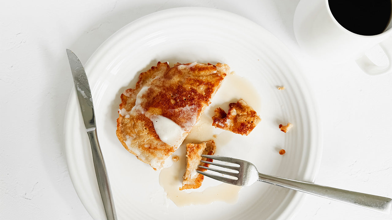 - Serve with butter and syrup (we like elderberry syrup or Lakanto's Monk Fruit Sweetened Maple Syrup) with a pinch of St. Hildegard's Defender Dust sprinkled on top (optional), next to a steaming cup of spelt coffee and relish in the moment. This recipe yields 6-10 medium-sized pancakes.