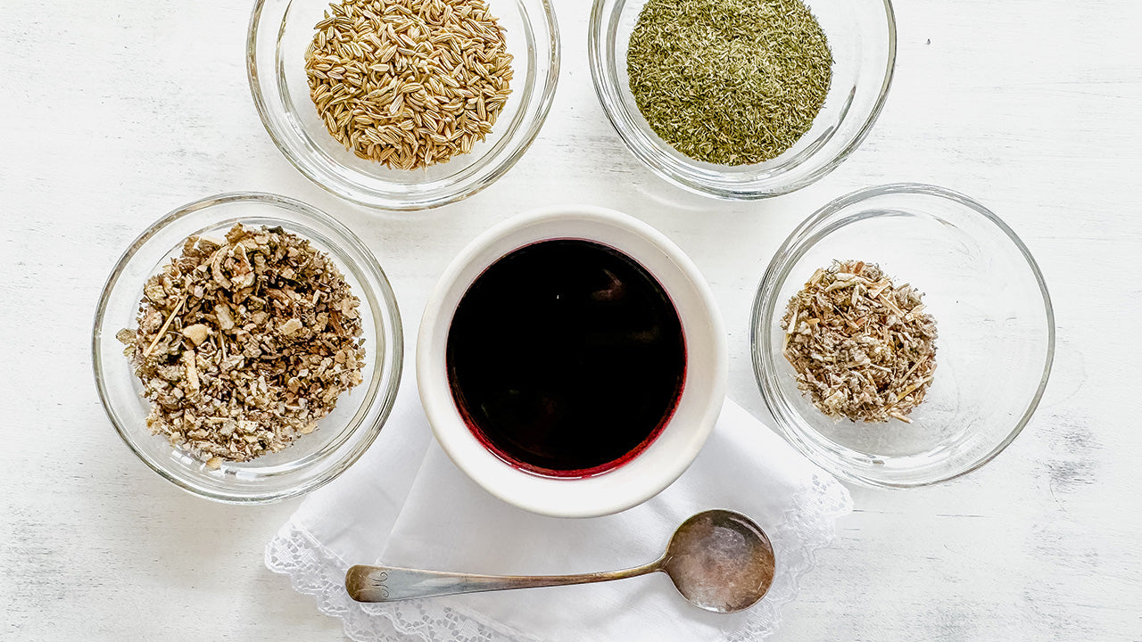 - Pour the wine and herbs into a small cooking vessel, cover, and bring to a boil. The alcohol in the wine will extract the nutrients from the herbs and burn off, so that less than 2% alcohol remains (if you don't want any alcohol in your tonic, allow it to simmer for a minute).